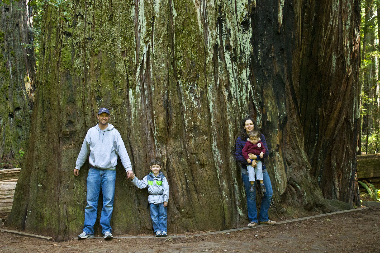 "Just" another really big tree. You'll notice the terrain here has little brush. I assume it was because of the fire that came through here however many years ago. You can again see the fire evidence. The only plants that really grows here are ferns, lots of poison oak, and very large clovers and occasionally there will be a maple tree. Where as when we traveled north to the National redwood forest, there is all kinds of foliage and it's really tall. Here I really like how much more defined the trees are, probably because of the fire.